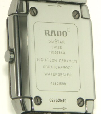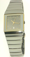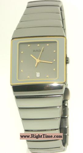 Platinum color Rado diaStar high-tech Ceramic scratchproof case and band, sapphire crystal, powered by Swiss Quartz Analog ETA calendar movement.