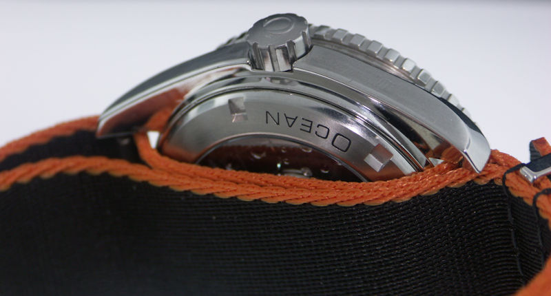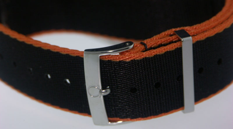 Factory Logo embossed. Black color. Genuine Omega Nato style nylon strap.