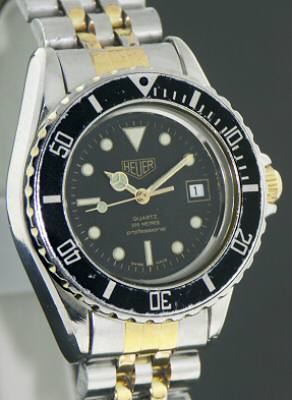 Gold electroplated accents. Duo-Directional rotating, ratcheted, 0-60 countdown. Shows scratches on bezel.