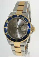 18kt solid Gold. Uni-Directional rotating, ratcheted, 0-60 Elapsed-Time. Blue insert.