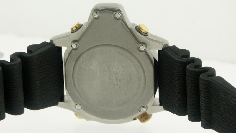 Uni-Directional rotating, ratcheted, 0-60 Elapsed-Time. Gold electroplated accents.