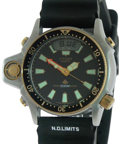 Iconic Citizen Promaster Aqualand with depth gauge. Original model that started in 1985 and was recently re-launched in 2025 with 40th anniversary commemorative edition.