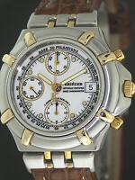 Krieger Chronometres Suisses Ref B929, Swiss made automatic Chronometres Chronograph powered by Valjoux 7750, stainless steel case with 18kt solid gold accents, alligator band on deployant buckle