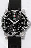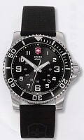 Swiss Army Men`s wrist watch model 24135 from Swiss Army Maverick II collection. Swiss Quartz movement, stainless steel case with black unidirectional bezel, sapphire crystal, luminous bezel marker, hands and markers on black color dial with Arabic numerals, date calendar, black rubber watch band. Water resistant to 100 meters.