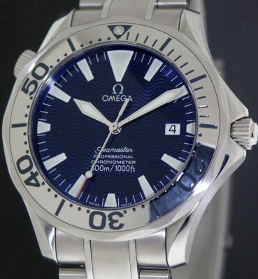 Sir Peter Blake`s choice, the most accomplished ocean-racing skipper of his generation, is this 41mm Omega Seamaster automatic model 2255.80.00, 300m water resistant with royal blue dial and waive pattern, extra large luminous markers and hands, all stainless steel case and bracelet, box and papers