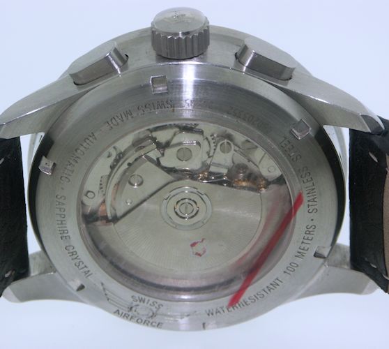 Swiss Army Air Boss Mach VI powered by Valjoux Cal.7753 Swiss Mechanical Automatic movement with date calendar, window display at "4:30". Gorgeous deep red (oxblood) color dial and black chronograph sub-dials