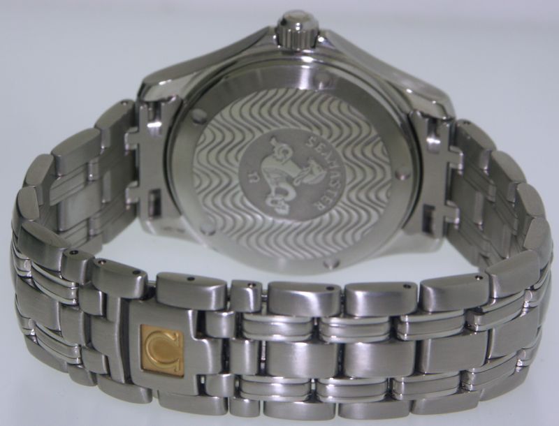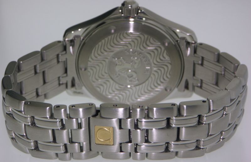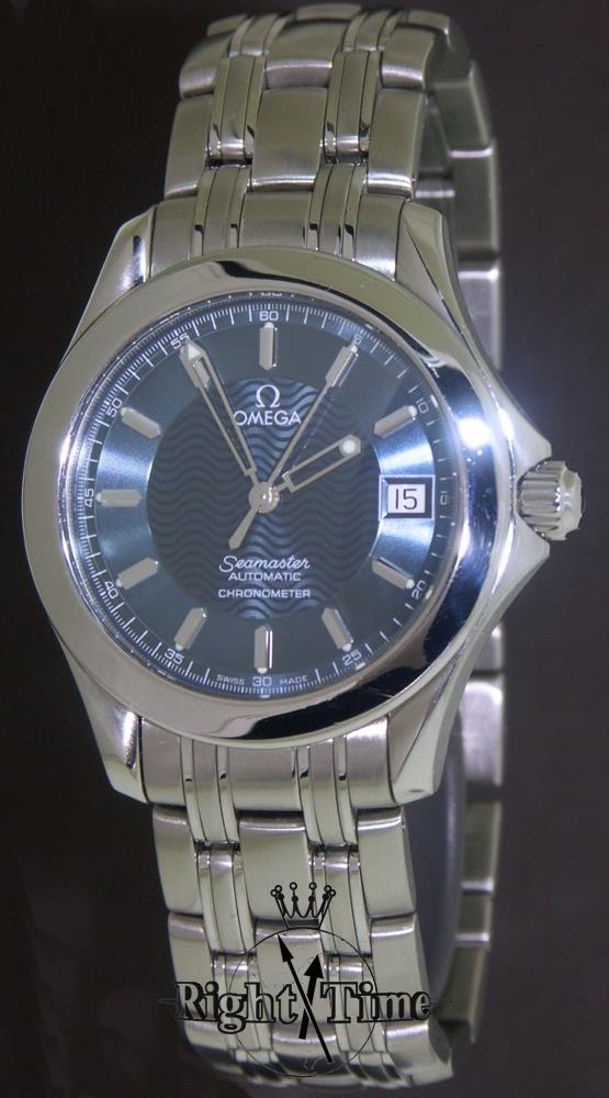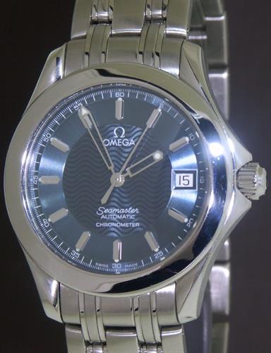 Omega "SeaMaster 120m" Swiss made COSC automatic Cal.1120 model 2501.81.00, water resistant with wave pattern navy blue dial, all stainless steel 36mm case and bracelet
