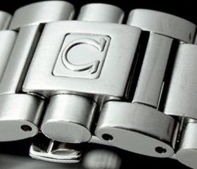 Deployant style, with spring release. Factory Logo engraved/embossed.