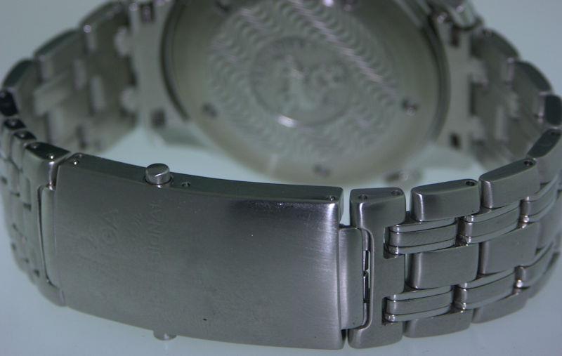 Solid AISI 316L stainless steel. Combination satin/polished finish. Watch with bracelet comfortably fits wrist size:. 7 3/4".