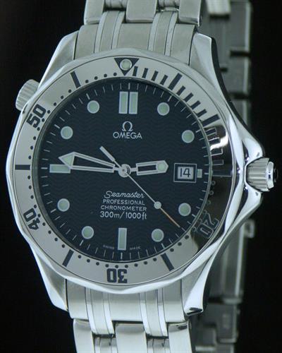 Sir Peter Blake`s choice, the most accomplished ocean-racing skipper of his generation, 41mm Omega Seamaster automatic model 2532.80.00, 300m water resistant with blue dial and waive pattern, all stainless steel case and bracelet, box and papers