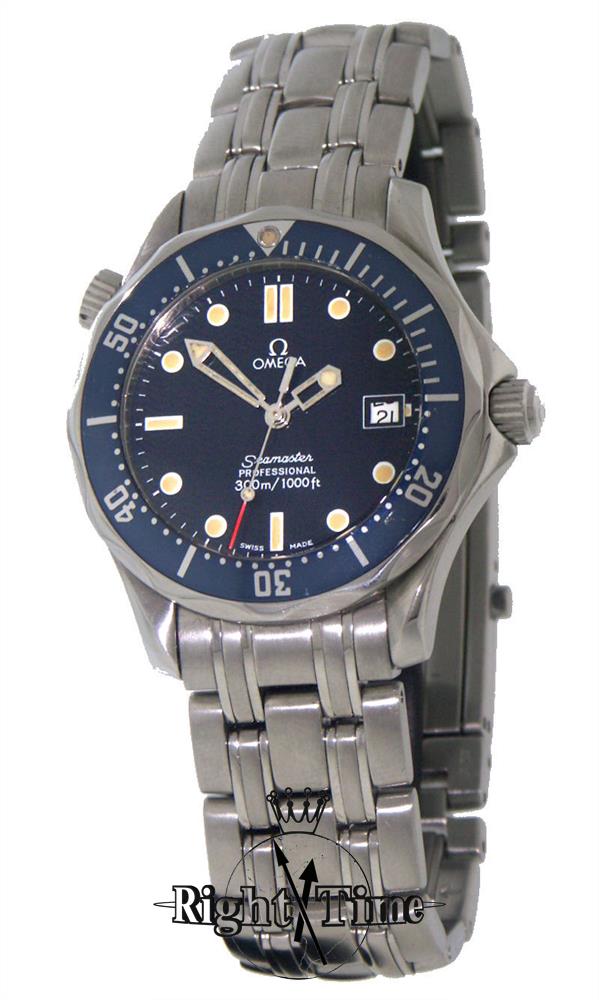 Omega Seamaster quartz "James Bond" 36mm stainless steel case and bracelet 2561.80.00, blue dial with waive guilloche pattern, caliber 1538