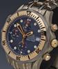Omega Seamaster "James Bond" Professional Automatic Chronograph Chronometer model 2296.80.00. Water resistant to 300 meters. Omega Cal. 1164 based on Valjoux 7750 25 jewels Swiss Automatic chronograph movement. Satin and polish finished case with 18kt solid gold uni-directional 60 minutes bezel, blue color textured dial with large luminous markers and date calendar. Satin and polish finished titanium with 18kt solid gold bracelet with tri-fold deployant clasp and over-the-wetsuit expansion.