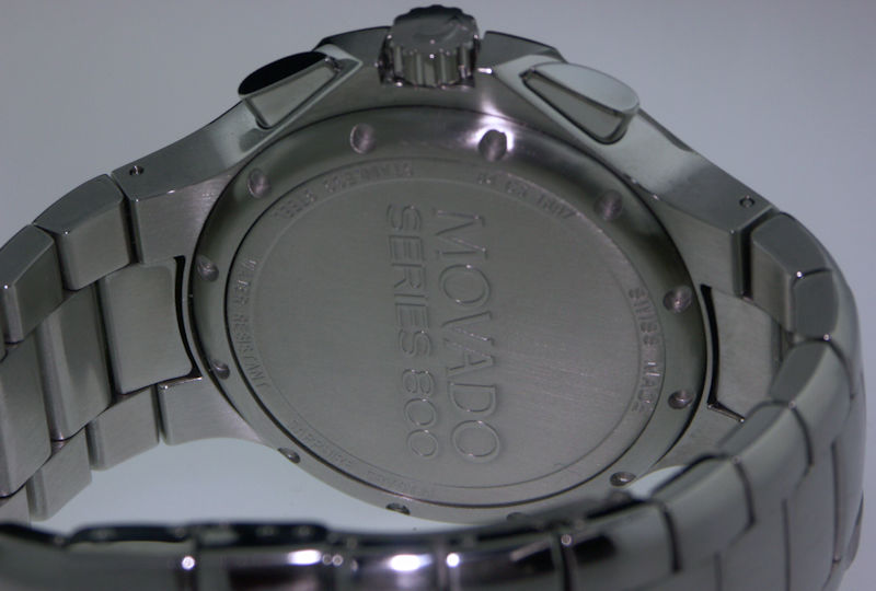 Movado Series Sport 800 model 2600037. Swiss quartz analog chronograph with stainless steel case and performance steel bracelet. Silver dial with applied steel markers and hands. Sapphire crystal. 200 meters water resistant.