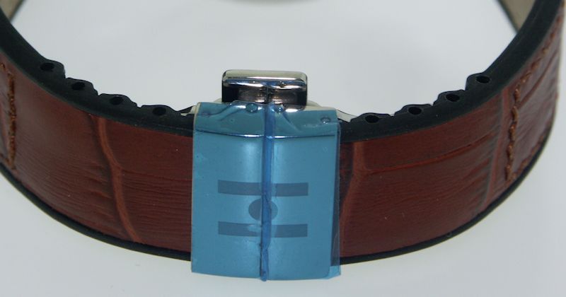 Brown color. Alligator style textured leather. Genuine rubber. Austrian made by Hirsch, Rubber strap with leather uuper and lower parts.