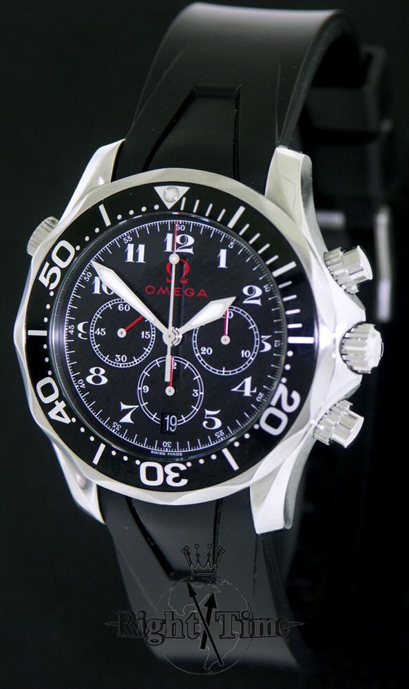 Omega Seamaster automatic Professional Chronometer Chronograph model 2894.51.91. This commemorative model is dedicated to 1948 London Olympic games. Water resistant to 300 meters. Powered by 33 jewels Omega Calibre 3302. Polished and satin finish stainless steel case with black rubber strap.