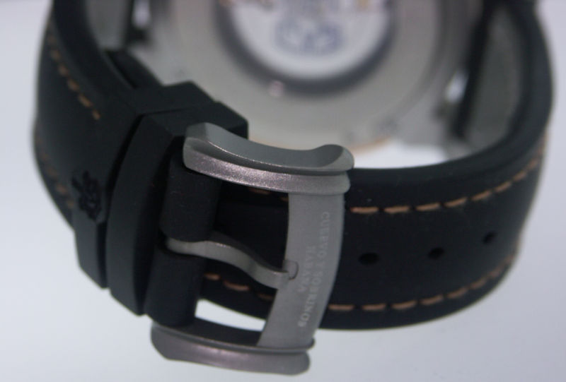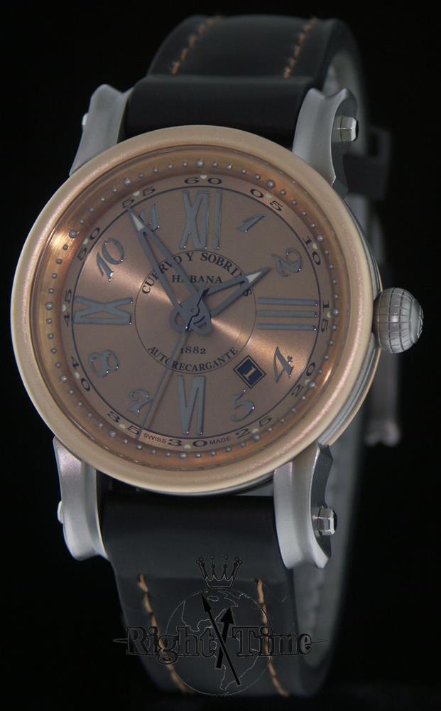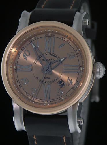Cuervo Y Sobrinos autorecargante Torpedo Caribeno Solo Tiempo Pirata model 3053 with bronze case, stainless steel and titanium case elements and bronze color dial, on black rubber strap with bronze stitching