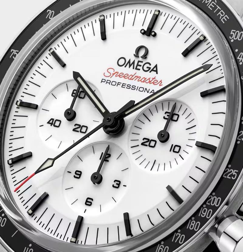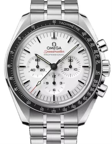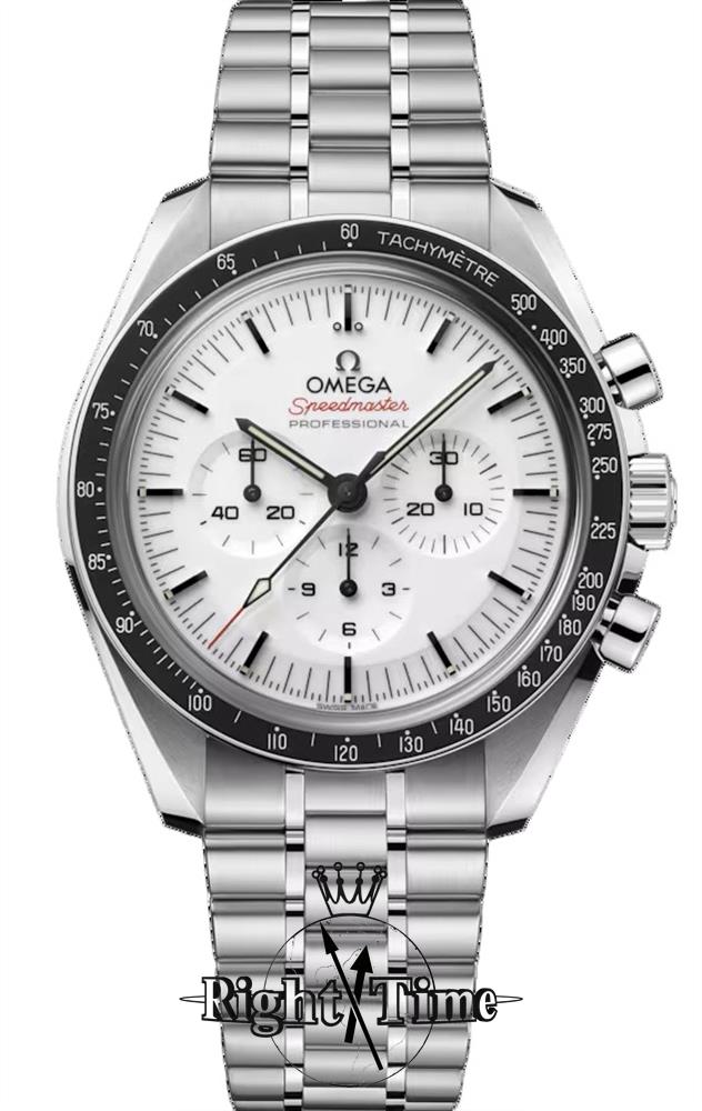 Omega `Speedmaster Moonwatch Professional`manual wind chronograph 310.30.42.50.04.001 40mm stainless steel case and bracelet (extra rubber strap), with Alaska white dial, powered by Omega manufactured co-axial calibre 3861
