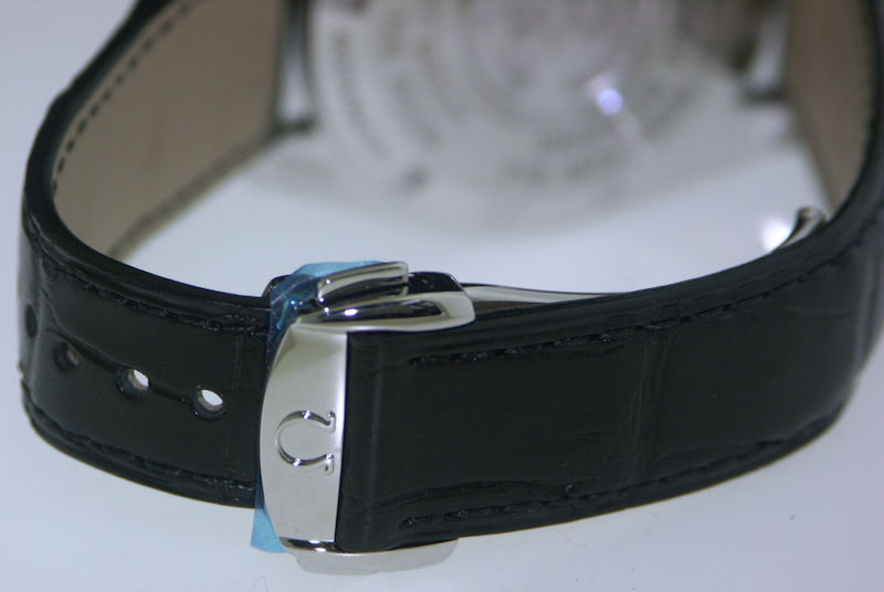 Black color. Genuine Alligator leather. Factory Logo embossed. Brand new, never worn, with blue stickers.