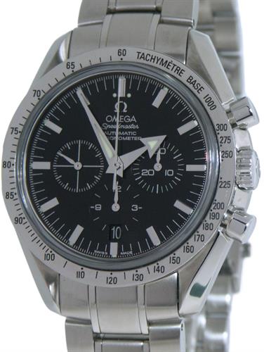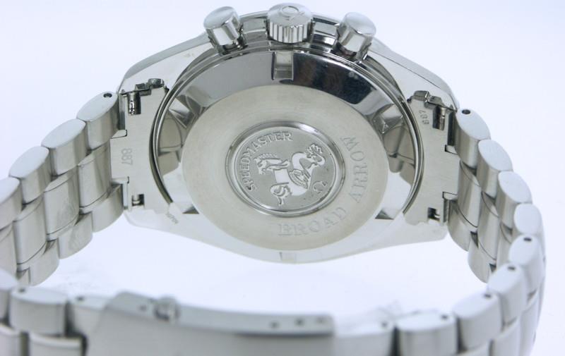 As the name Broad Arrow was given to the hands of the original Speedmaster model in 1957, this beautiful edition of 2000 perpetuates the Speedmaster legend today. Masterfully executed with newly updated Omega exclusive COSC automatic, column-wheel controlled chronograph 3303 with 55 hour power reserve, movement. Sapphire crystal, durable and elegant steel bracelet. Blued luminous filled hands and markers on white dial.