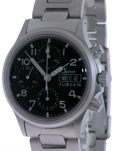 Sinn Original Flieger 356, in military finish sandblasted 38.5mm stainless steel case and bracelet with acrylic crystal, powered by Valjoux 7750 automatic chronograph movement