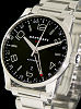 Montblanc Time Walker GMT automatic watch. Polished stainless steel case and watch bracelet, black color dial with large Arabic markers.