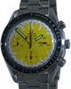 Omega Speedmaster Racing reduced model 3810.12.40. Michael Schumacher special edition. Swiss made automatic chronograph movement. Solid stainless steel case and bracelet. Domed acrylic crystal. Black tachymeter bezel ring. Yellow dial with racing white checker flag minute track.