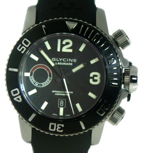 Glycine "Lagunare" Limited Edition of 300 pieces. COSC Certified Chronometer. Model 3875-19 LCC 3000 divers model with locking down rotating bezel, helium escape valve crown at 4 and bezel locking crown at 2, protective cap over the winding crown.