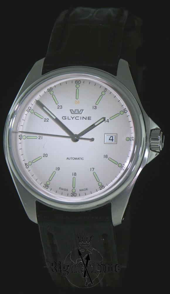 Glycine Combat 6 Automatic watch with ivory dial in stainless steel case. Swiss automatic ETA2824-2 movement. Domed Sapphire crystal.