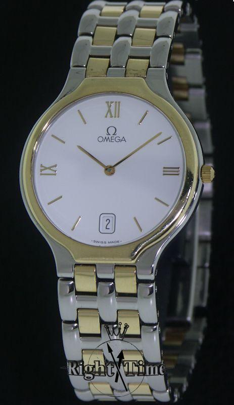 Omega quartz "DeVille Symbol" two tone dress model in stainless steel and 18kt solid gold bezel and bracelet links, Omerga Swiss Calibre 1436