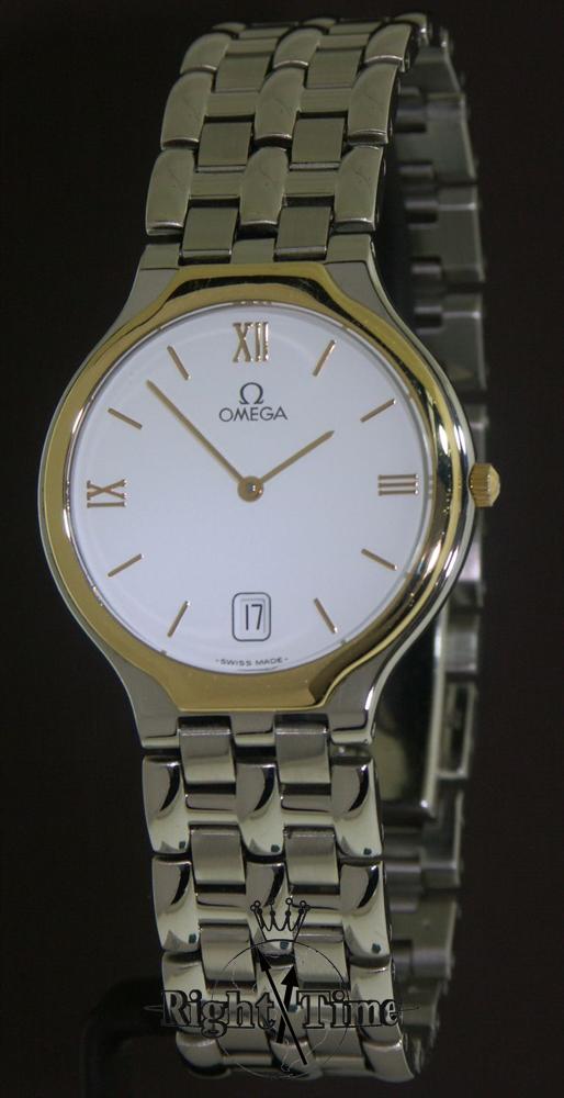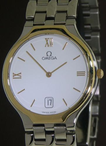 Omega quartz "DeVille Symbol" two tone dress model in stainless steel and 18kt solid gold. Omega Swiss Calibre 1440 movement.