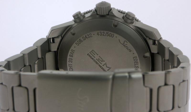 Solid Stainless steel. Tegimented case is produced in-house by Sinn's case making affiliated company in Glashutte, Germany.
