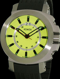 Xemex Concept One Big Date model 6002.03. Swiss quartz movement. Stainless steel case with rubber band. Bright yellow dial with "Grande Guichet" date at 12 o`clock, luminous hands and indexes.