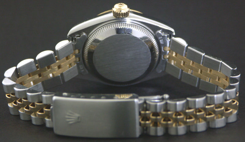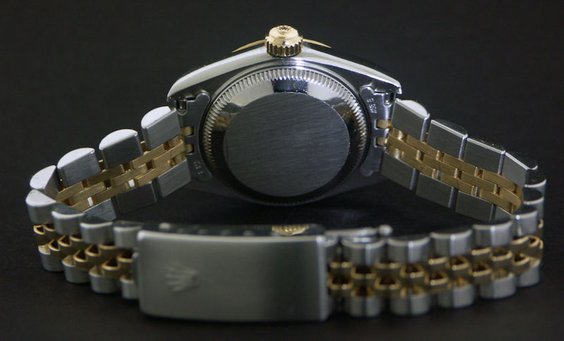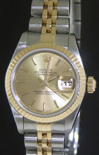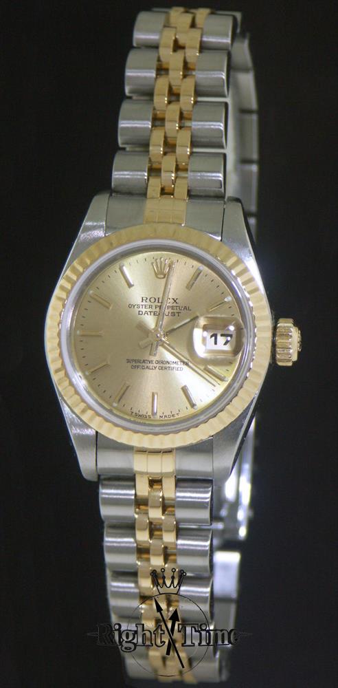 Ladies Rolex 69173 Oyster Perpetual Datejust Swiss made Automatic model, 18kt yellow gold bezel, 18kt gold and stainless steel jubilee bracelet, champagne dial, box and papers, 1 owner, serial number T1363**