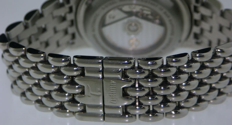 Silver Satin color. Arabic applied numerals. Luminous ( radiation-free Super-LumiNova ) hour markers.