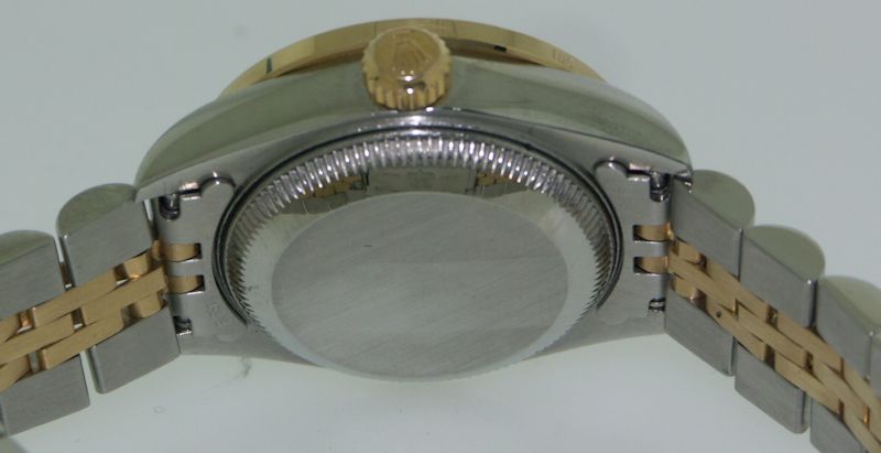 Ladies Rolex Oyster Perpetual Datejust 18kt gold and stainless steel model 79173 with diamonds on the bezel (over 1cttw).