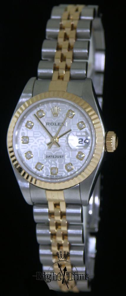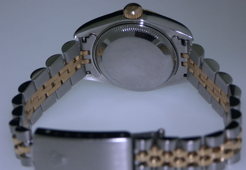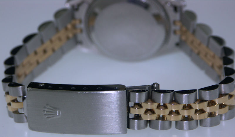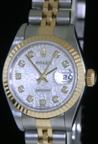 Ladies Rolex Oyster 79173 Perpetual "DateJust" Swiss made Automatic Rolex 31 jewels Cal.2235, 18kt yellow gold bezel, 18kt/stainless steel jubilee style bracelet, factory set diamond markers on silver Rolex "Jubilee" dial
