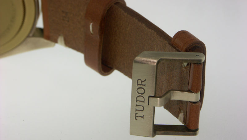 Tan color. Genuine leather. Factory Logo embossed. Comes with green/tan Tudor NATO style strap.