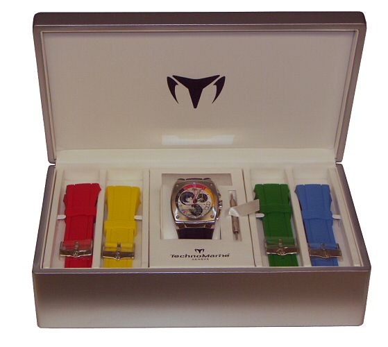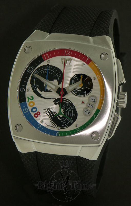 Sold out Technomarine 2008 Olympic Limited Edition model. Ultra Sport chronograph from the latest "Kra" collection, featuring steel case, white dial with Olympic design in Olympics colors, Swiss made quartz chronograph movement. Limited Edition.