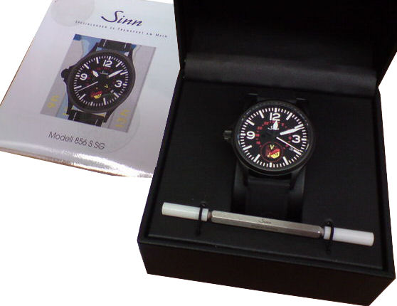 Sinn 856 S SG UTC watch with black PVD coated Tegimented steel. Limited Edition Series of 150 pieces. This version is made in honor of the German Bundeskriminalamt - Sicherungsgruppe (SG), which is the Security Group of the German Federal Bureau of Investigation, also called BKA). Consigned timepiece with box and papers