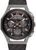 Bulova Men`s Curv chronograph watch. Model 98A162. High Performance Quartz Curv Chronograph movement. Stainless steel and titanium case with black rubber band and see-through back. Curved sapphire crystal. Grey exhibition dial with rose gold tone hands and markers