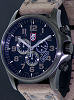 Luminox Atacama Field Chronograph watch from 1880 Series model A.1893. Swiss quartz chronograph movement alarm and date functions. Stainless steel PVD plated watch on leather strap. Sapphire crystal, 100 meters water resistant. Black dial with brown Arabic numerals and micro gas lights on hour markers and hands.