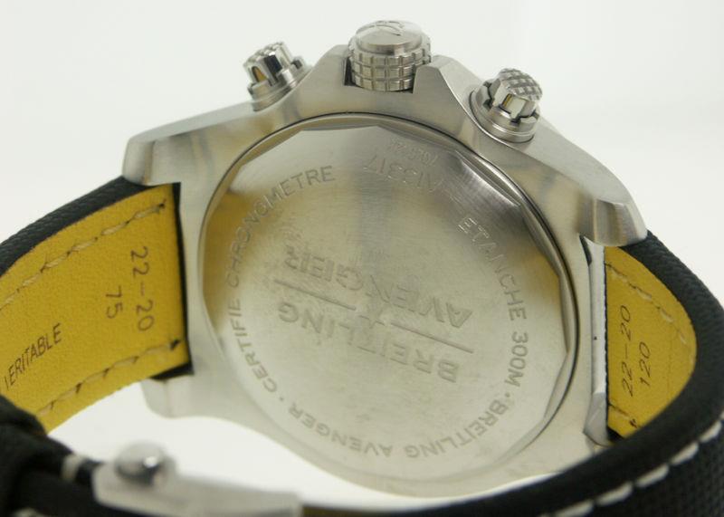 Breitling "Avanger" A13317101B1X1 45mm case with automatic chronometre chronograph movement, black dial, Kevlar/leather black strap on deployant clasp, box and papers