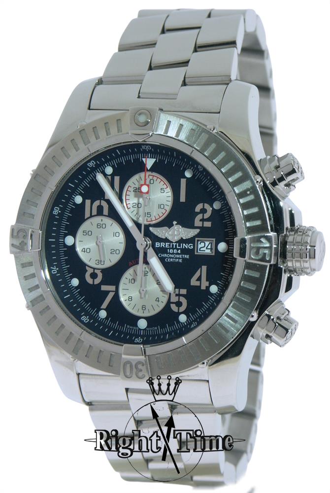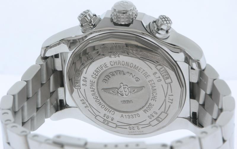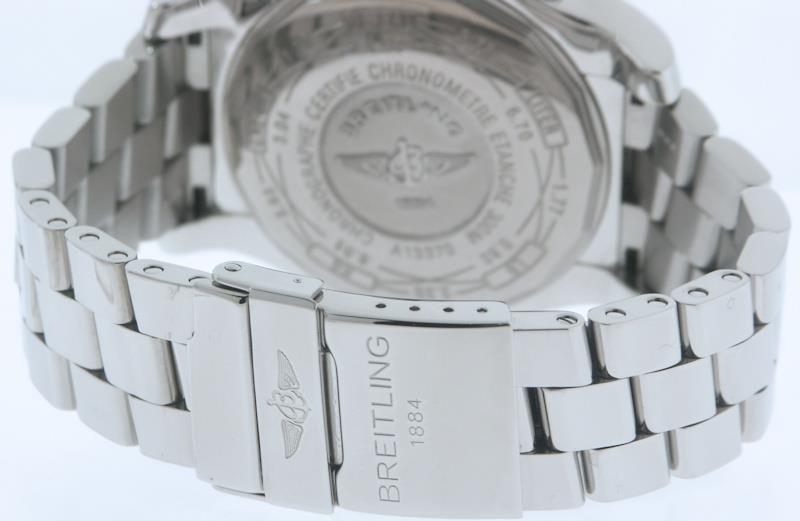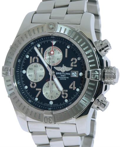 Breitling `Super Avenger` A13370 48mm case with automatic chronometre chronograph movement, black dial with applied polished markers and silver sub-dials, polished steel case and band