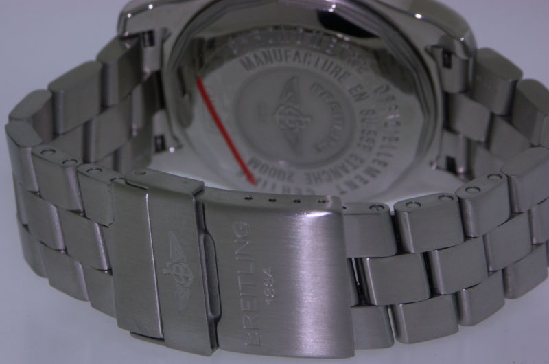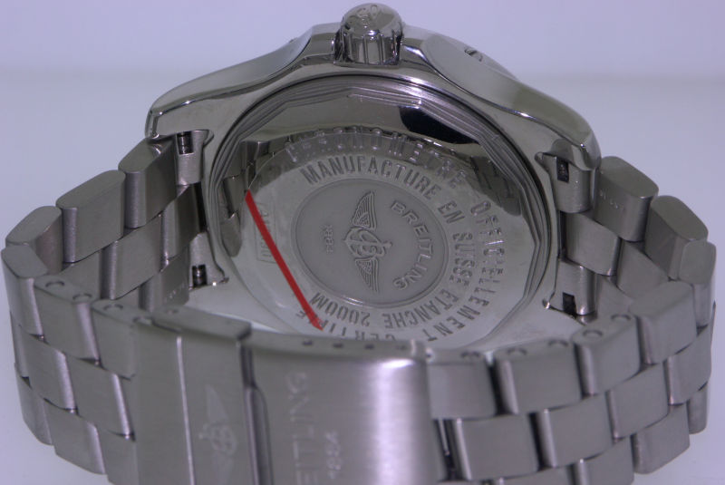 Breitling Superocean Steelfish X-Plus model A17390. Swiss made automatic movement with COSC chronometer certification. Rugged and heavy stainless steel 44mm case, with combination finish. Black dial with luminous filled polished markers & hands, and a red tipped second hand. Stainless steel bracelet with tri-fold clasp and safety. Sapphire crystal. Water resistant to an astounding 2000 meters!