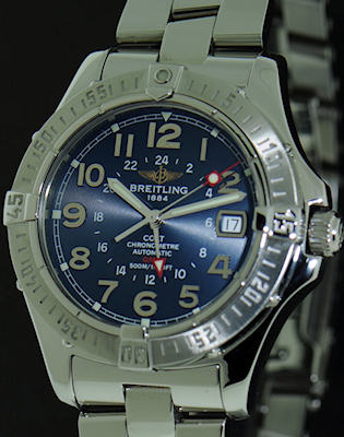 Breitling "Colt GMT" A3235011 automatic with COSC Certified Swiss made ETA2893-2 21 jewels movement, solidly built divers elegant model with highly polished stainless steel case and bracelet, 500m two time zone super-diver,box and papers