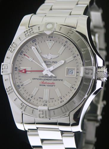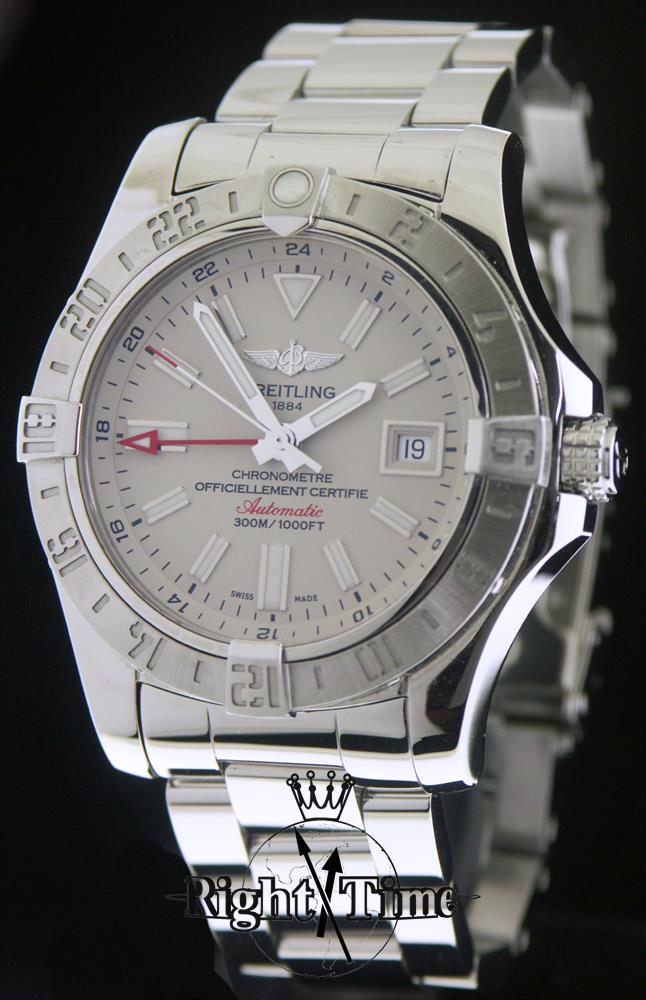 Breitling "AVENGER II GMT " automatic with COSC Certified Swiss made ETA 2893-2 movement, solidly built divers elegant 44mm model with all polished stainless steel bracelet and light ivory color dial, 300m water resistant dressy diver