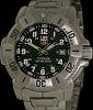 Satin finish. Pure Titanium. Uni-Directional rotating, ratcheted, 0-60 Elapsed-Time. Bright micro gas light encased in nickel silver housing protected by sapphire glass window.