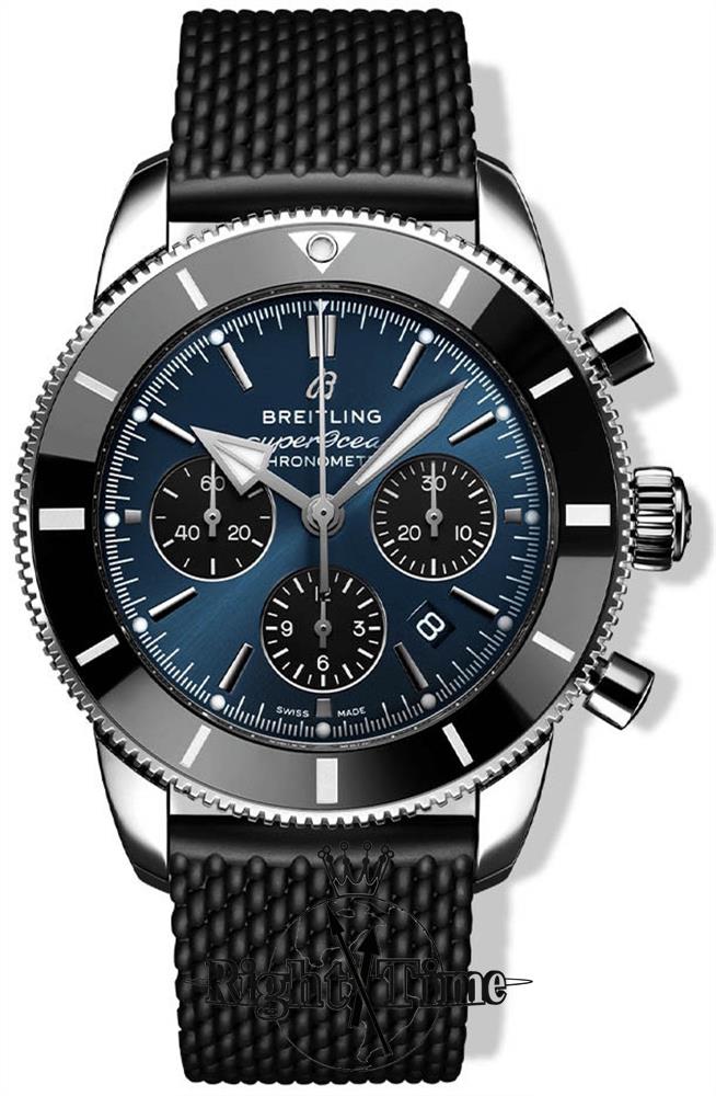 Breitling Superocean Heritage 44 model AB0162121C1. Swiss made automatic Breitling Caliber B01 automatic movement with chronograph and date functions. COSC certified chronometer. Polished stainless steel case on mesh bracelet. Blue dial with black color sub-dials. Uni-directional bezel with black ceramic 60 minute insert. Sapphire crystal. Water resistant to 200 meters.