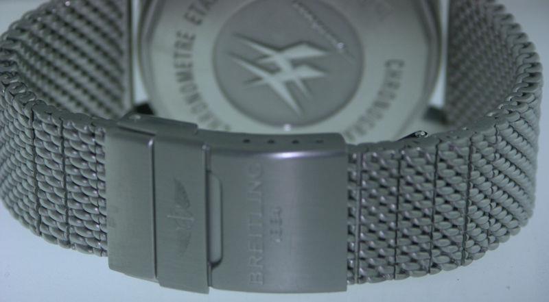 Breitling Transocean Chronograph Unitime AB0510 automatic model with world time display with blue dial. Satin stainless steel case and fine mesh bracelet.