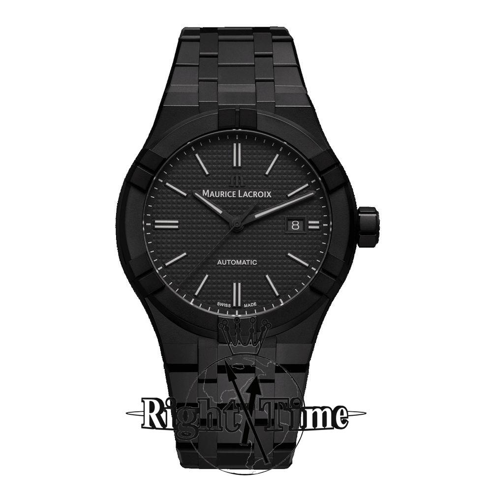 Maurice Lacroix Aikon model AI6008-CRM22-330-2. Swiss made Caliber ML115 automatic movement. Black scratch-resistant ceramic case and bracelet. Textured clous de paris motif black dial with luminous filled hands and markers. Water resistant to 200 meters. Sapphire crystal.